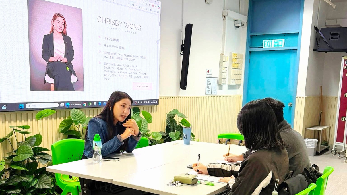 本校「校友回校分享」系列活動近日邀請到校友、資深化粧師 黃諾詩(Chrisby Wong) 重返校園,與學弟妹面對面分享其在專業化粧行業中的職涯歷程與寶貴經驗。現為個人化粧工作室負責人,並帶領專業團隊的她,以真實而具啟發性的故事,深入剖析行業的實況與成功之道。