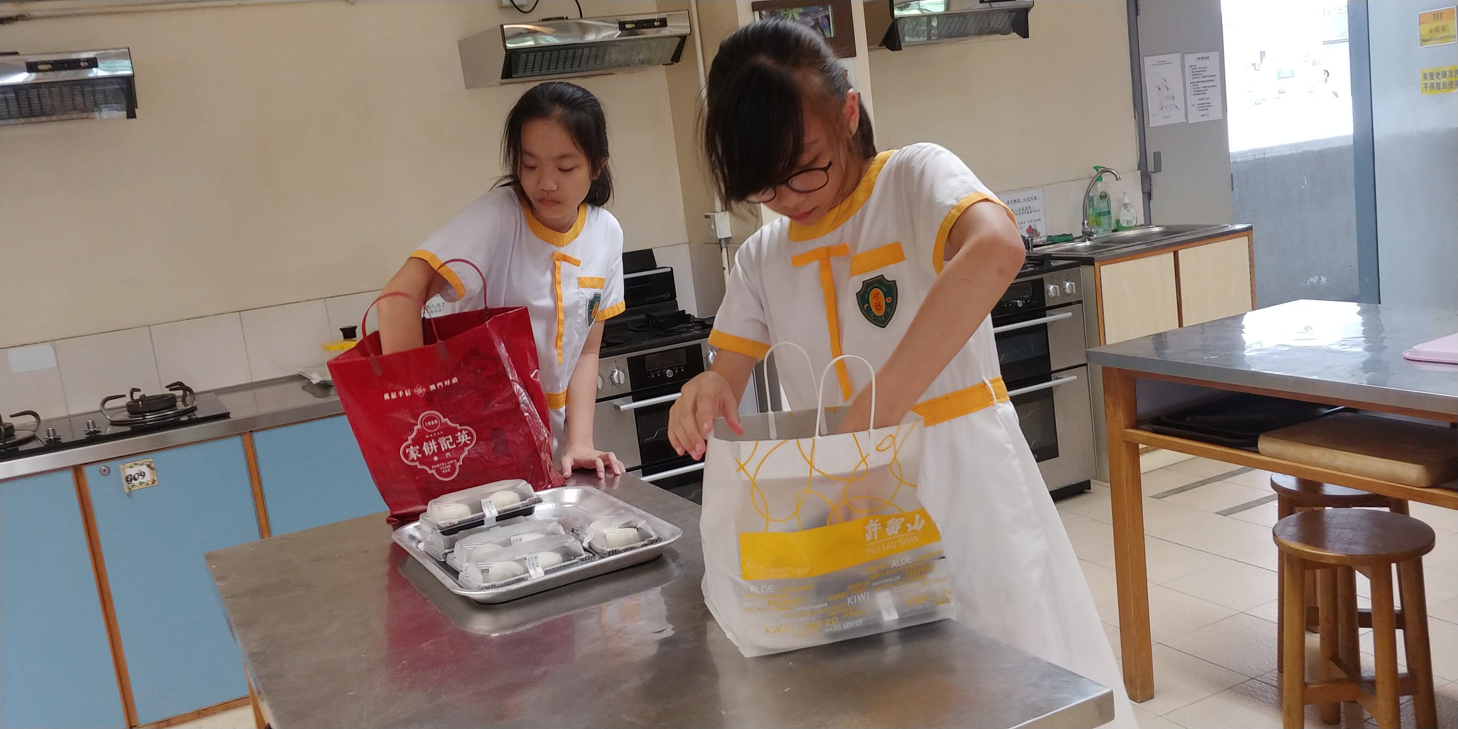 為與區內長者分享中秋佳節氣氛,修讀科技與生活科的同學聯同家長教師會成員,合力製作約80盒傳統、冰皮及奶皇月餅,送予附近社區的老人院,讓長者享受佳節食品。同學也可藉此機會與長者傾談交流,非常有意義。