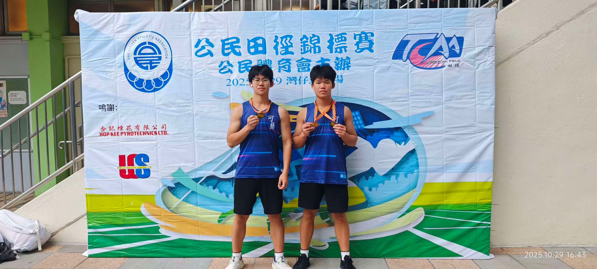 田徑隊同學參加2025公民田徑錦標賽第五站,表現出色,鄭偉瀚及鄭文韜分別奪得男子U18組標槍亞軍及推鉛球,擲鐵餅亞軍。