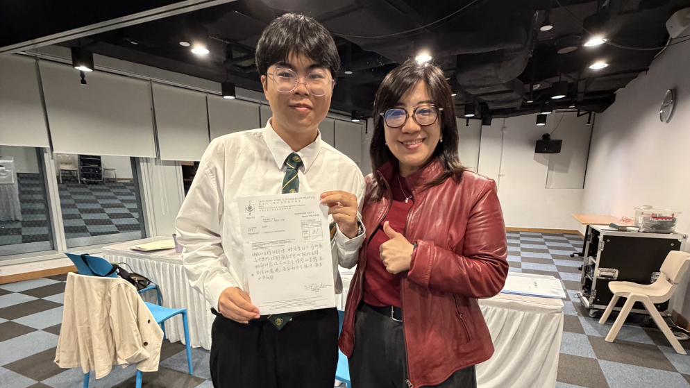 第78屆香港學校音樂節,4C 張尚宇同學於「19歲或以下 - 男高音」賽事,以一曲《在銀色的月光下》(塔塔爾族民歌)勇奪銀獎!這首作品達中央音樂學院7-8級水平,對於初出道的張同學來說絕對是高難度挑戰,最終他以81分優異成績摘下銀獎,實力不容小覷!